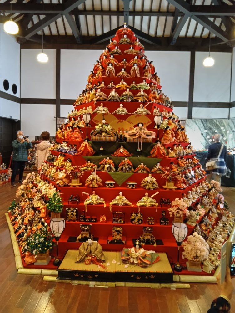 暖かい陽ざしの中、色とりどりの花を眺めたり、16段のひな人形の展示を見てきました。